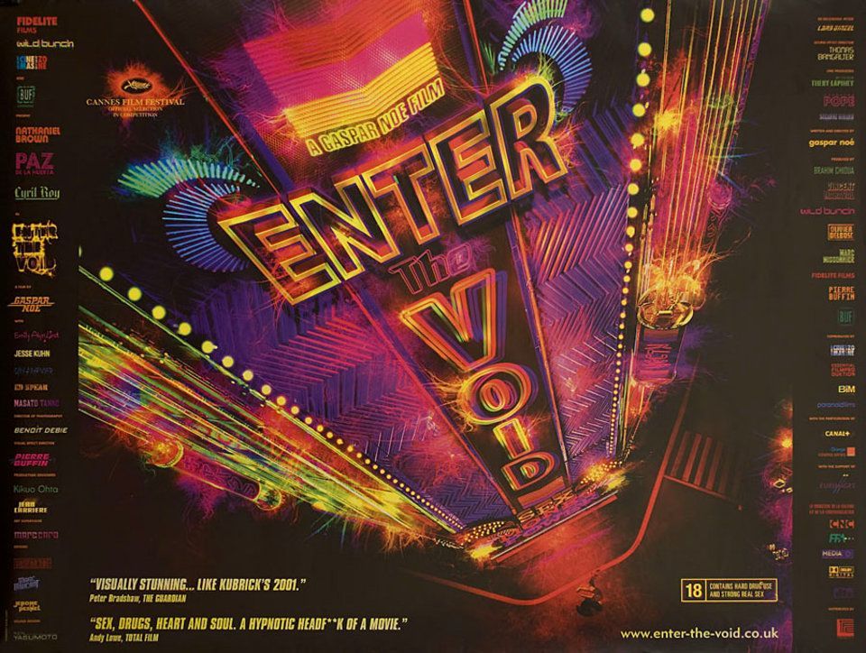 L’affiche du film Enter the Void (2009), réalisé par Gaspar Noé, est devenue presque aussi iconique que le film lui-même.